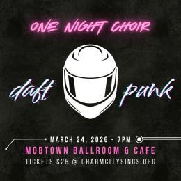 Charm City Sings One Night Choir is back and this time we’re diving headfirst into the electrifying world of Daft Punk, with the energized medley made famous by Pentatonix. In just one night, singers like you from across the region will come together, rehearse, and perform this pulse-pounding mashup of “Get Lucky,” “Harder, Better, Faster, Stronger,” "Digital Love" and more all powered by nothing but human voices.